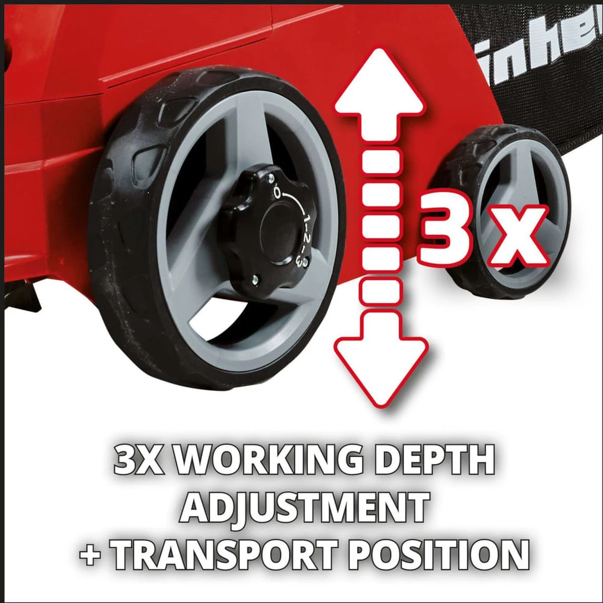 - Instelbare verticuteerdiepte, 3 standen + parkeerpositie